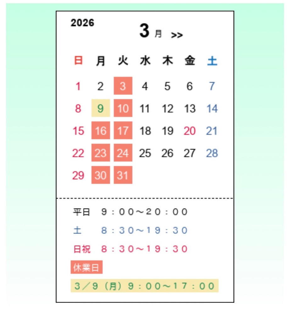 3月 営業カレンダー