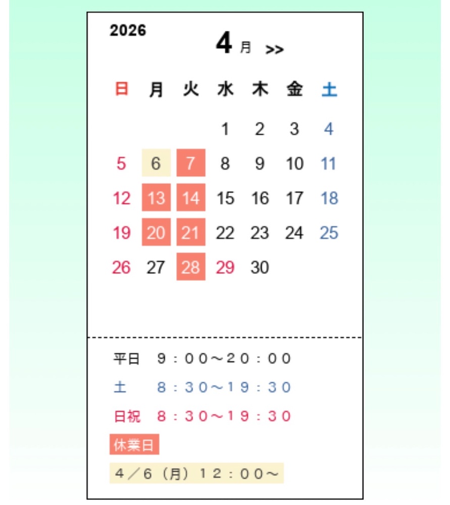 4月営業カレンダー